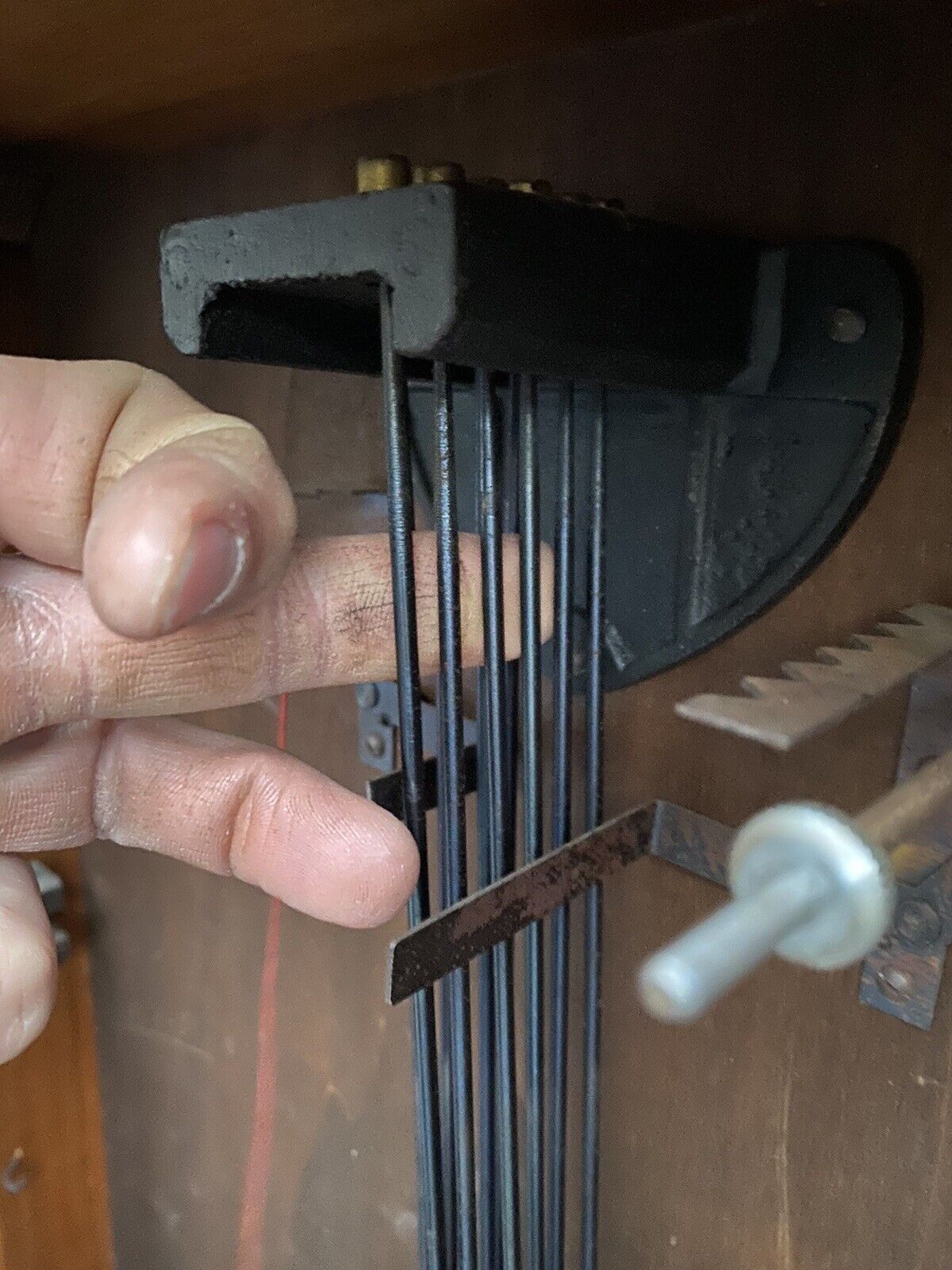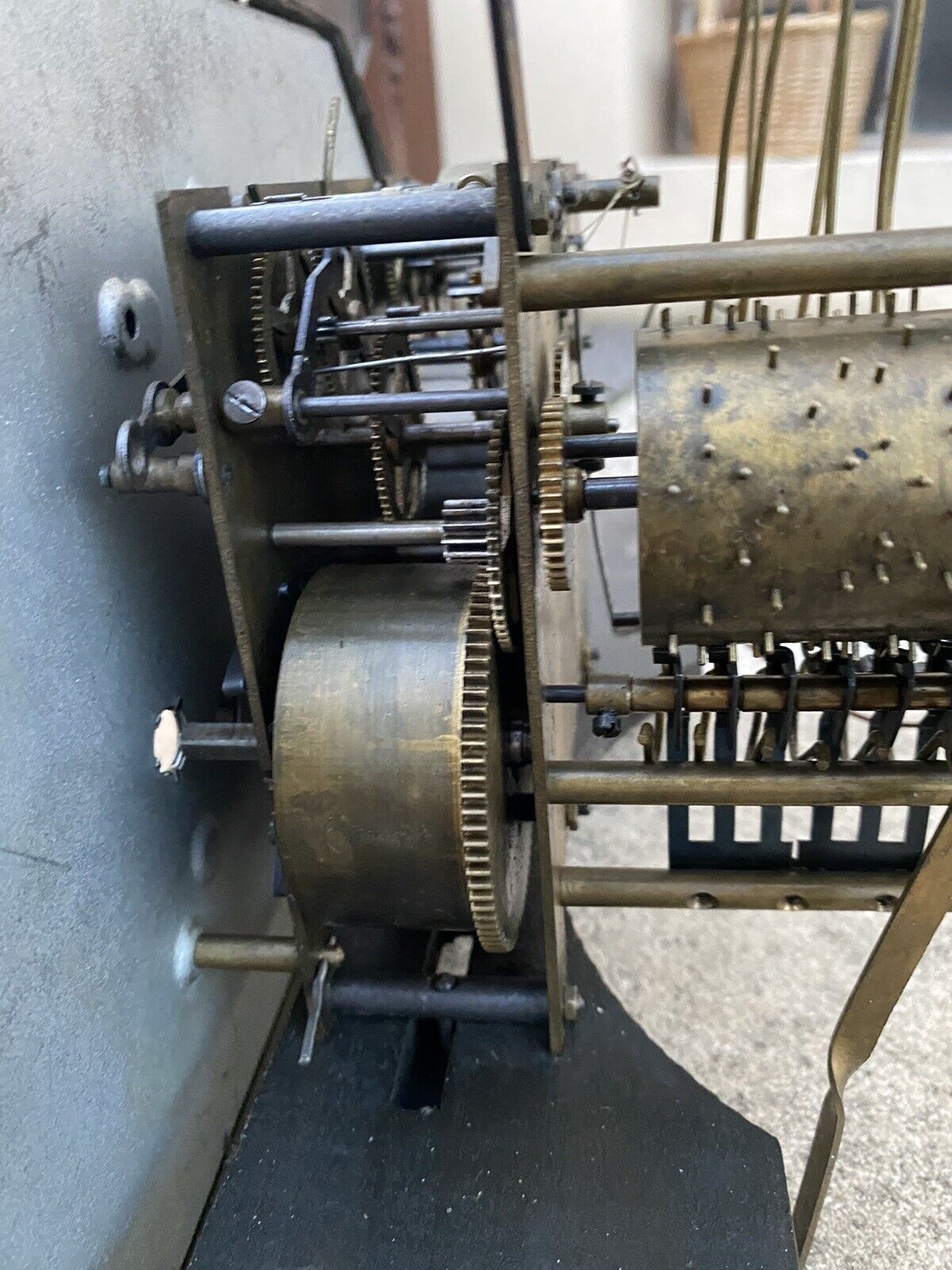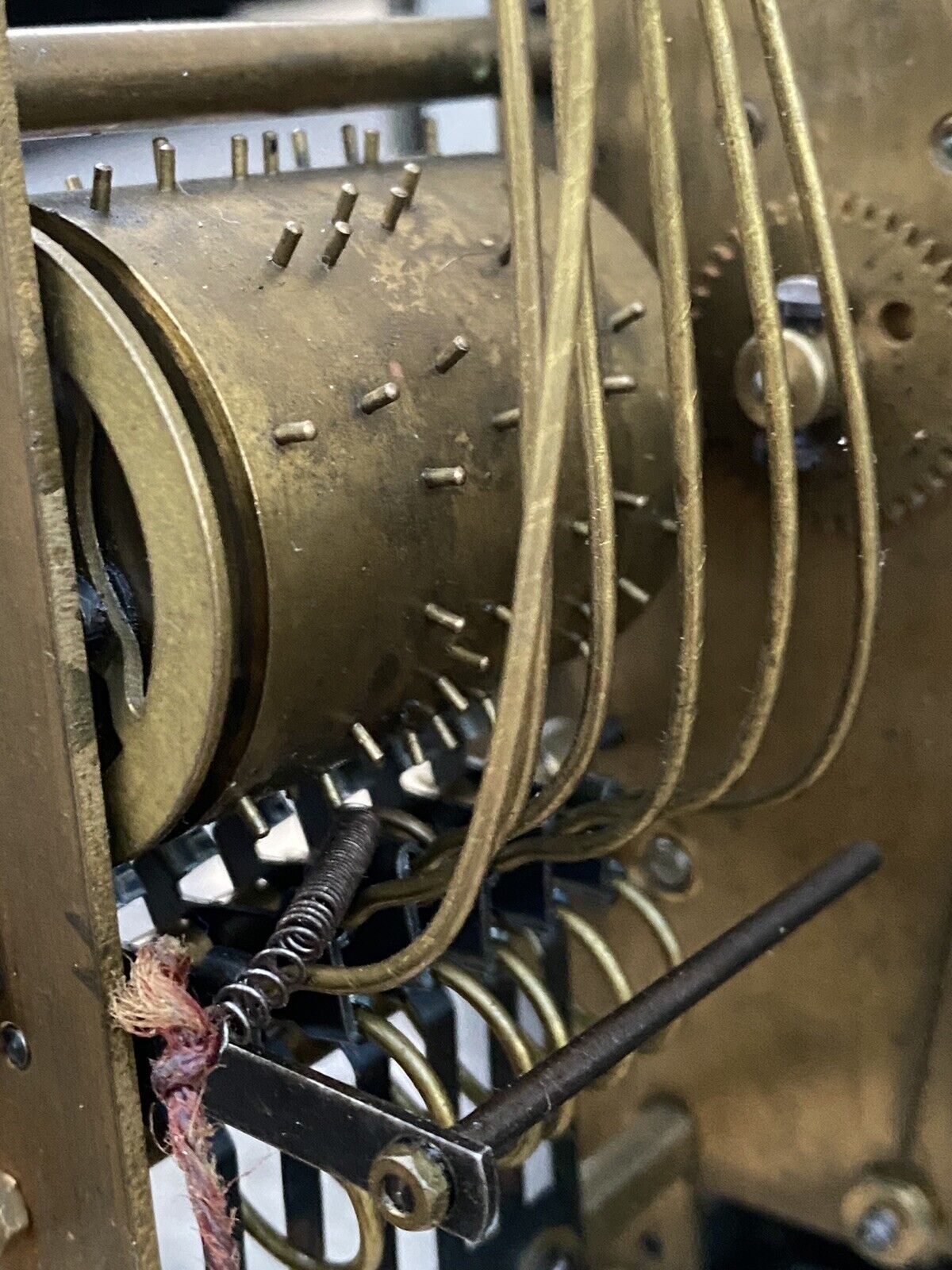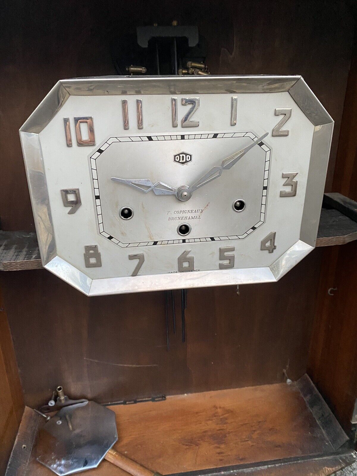 Carillon mécanique ODO de facture ancienne, doté d'un système sonore à 10 tiges et 10 marteaux produisant une résonance riche et profonde. Ce modèle rare, équipé d'un gros rouleau, bénéficie d'un mécanisme entièrement fonctionnel nécessitant un entretien régulier. L'élégante structure en noyer massif et placage affiche un état de conservation remarquable. Le balancier présente des traces d'usage mineures. Dimensions : 56 cm (H) × 45 cm (L) × 17 cm (P). Poids : 7,5 kg. Une pièce d'exception pour les collectionneurs d'horlogerie ancienne et les passionnés de patrimoine mécanique.